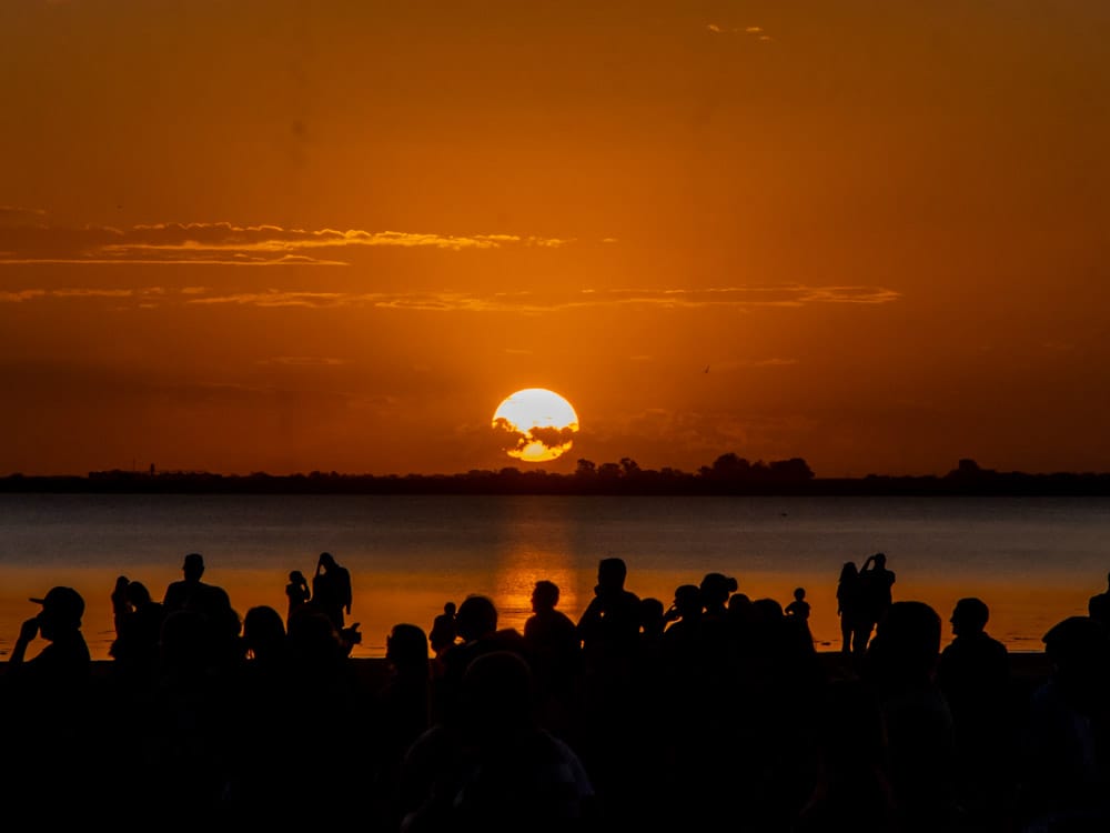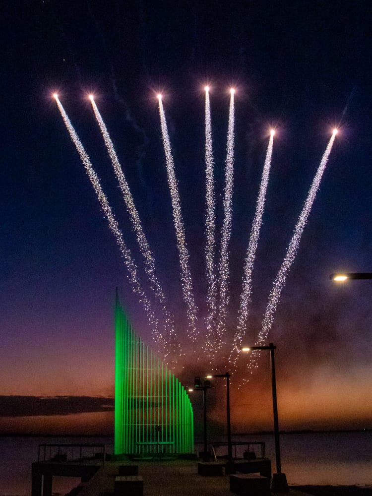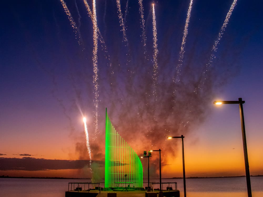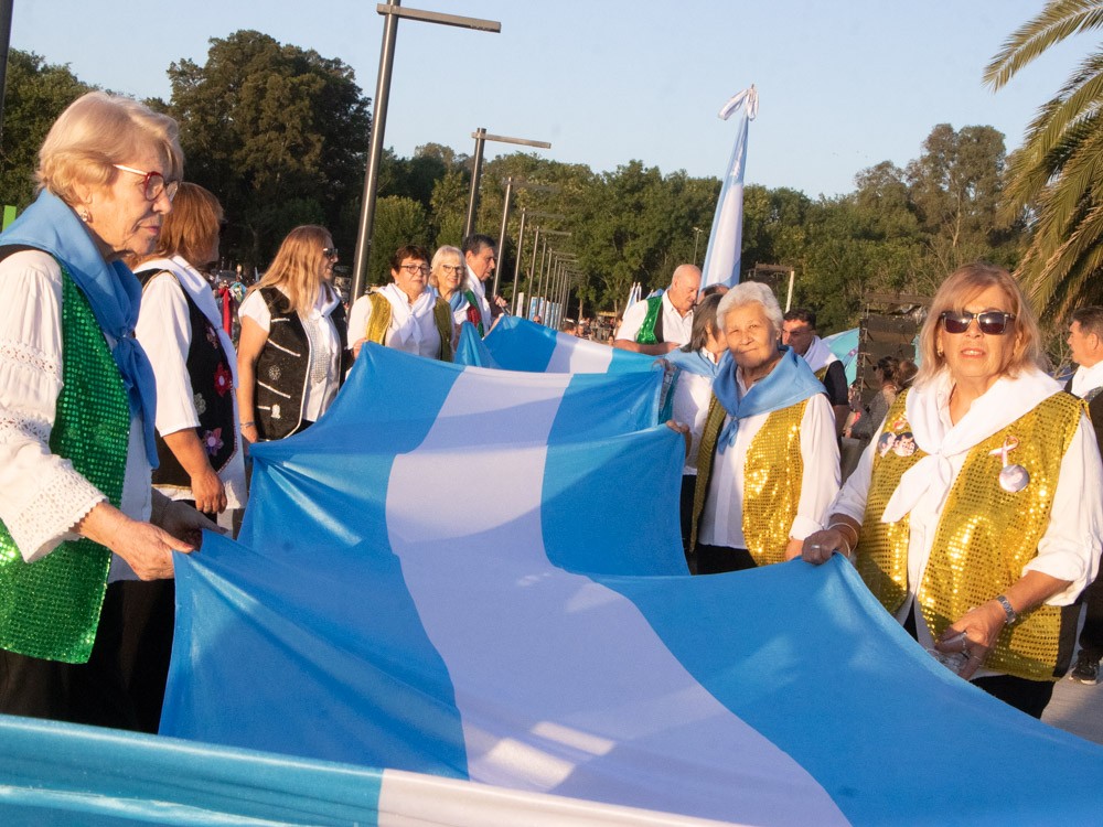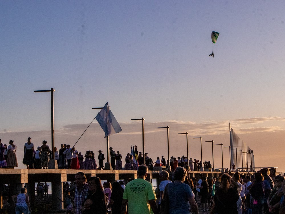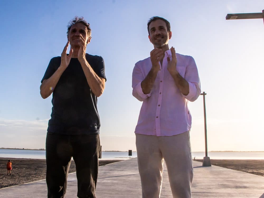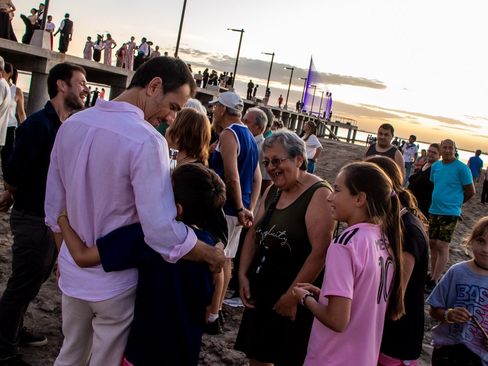 La jornada también tuvo momentos emotivos, como la interpretación del himno nacional argentino por Carlos y Pedro Cravelati, que resonó en el paisaje del atardecer en la laguna, decorado con luces que realzaron la festividad. “Haber podido coronar con la puesta del sol, como siempre decimos, una de las más bellas que existen con la imagen del espigón y por supuesto con esos fuegos lumínicos, le dio un marco espectacular a la fiesta”.