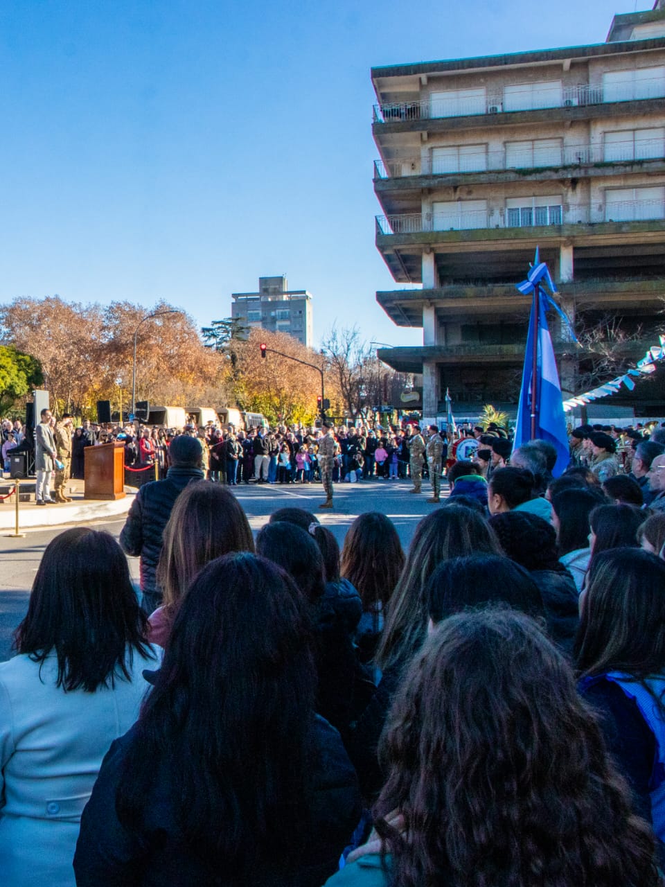 Tal como estaba previsto, el acto oficial por el Día de la Bandera se desarrolló en la Plaza Veteranos de Malvinas y fue presidido por el intendente de Junín, Pablo Petrecca, en conjunto con el jefe del Grupo de Artillería 10, Teniente Coronel Gonzalo Martín Crespo, en el marco de una convocatoria multitudinaria que reunió a vecinos, autoridades del Ejecutivo local, representantes del ámbito judicial y legislativo, instituciones educativas, fuerzas vivas y organizaciones de la comunidad. En su discurso, el jefe comunal puso en valor la fuerza simbólica de los emblemas patrios, reivindicó el rol de quienes dieron su vida por la Nación y anunció el lanzamiento de una convocatoria participativa para la creación de la bandera del Partido de Junín, con protagonismo de las infancias, las escuelas y las familias.