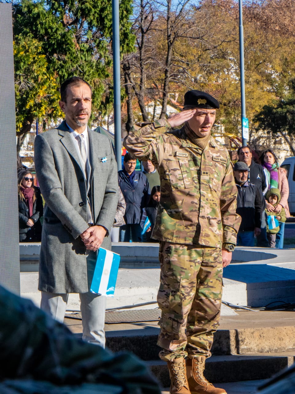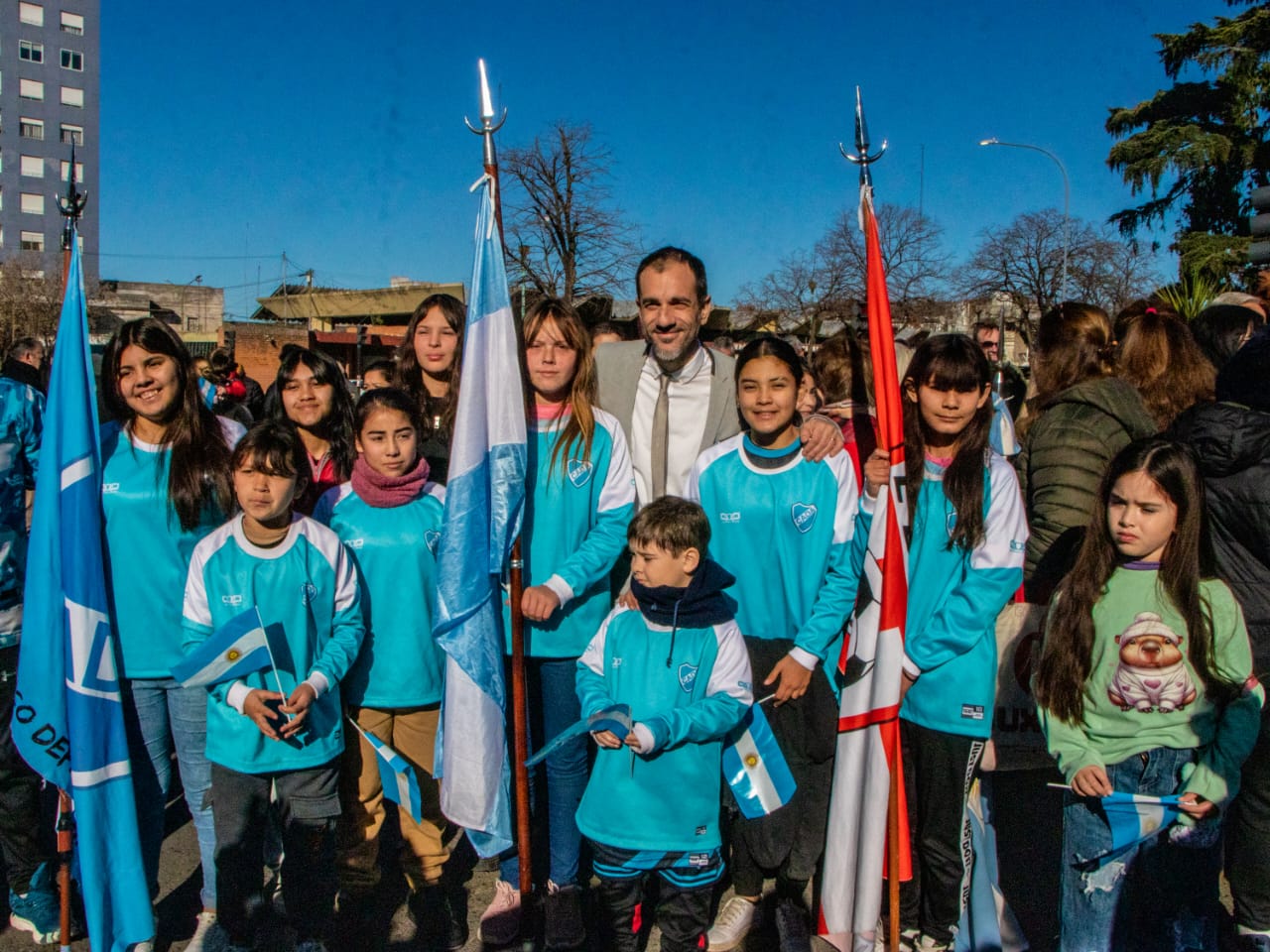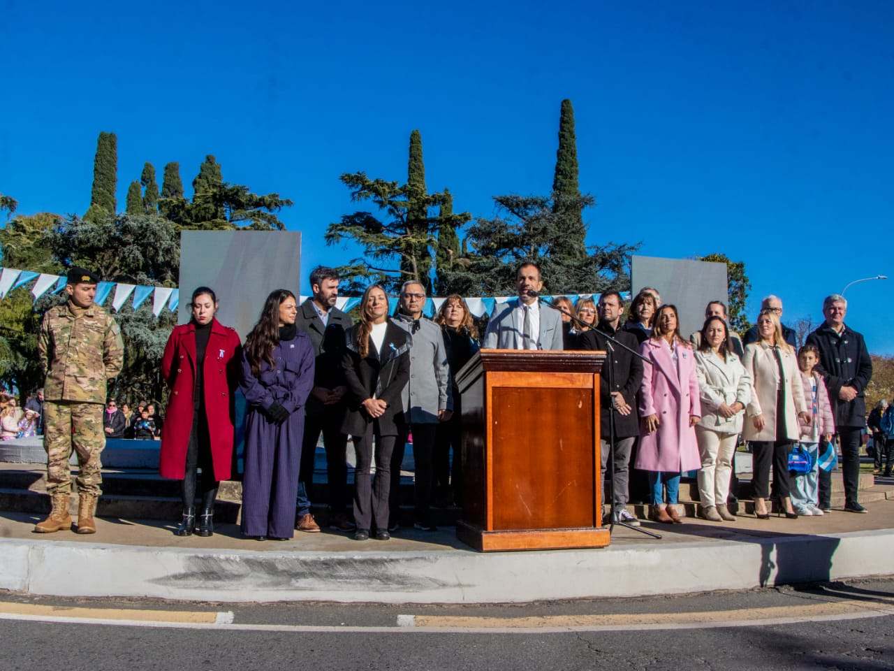 La jornada estuvo atravesada por un fuerte espíritu de identidad, pertenencia y emoción compartida, y contó con la participación de excombatientes de Malvinas, banderas de jardines maternales municipales, referentes eclesiásticos, miembros del Honorable Concejo Deliberante, colectividades, fomentistas, alumnos, docentes y medios de comunicación. En el inicio del acto, los soldados del Grupo de Artillería 10 realizaron el juramento de fidelidad a la bandera, mientras que el cierre estuvo a cargo de toda la comunidad presente, que, de manera unánime, reafirmó su promesa de defender, respetar y amar los colores nacionales con compromiso, responsabilidad y profundo sentido patriótico.