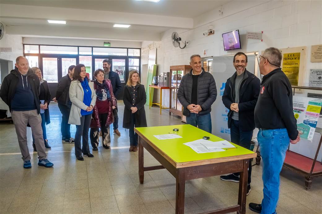 Participaron de rúbrica del nuevo acuerdo autoridades del Gobierno de Junín encabezadas por el intendente Pablo Petrecca, del Consejo Escolar, de la Inspección de Educación Técnica Profesional (ETP), como también de la propia EEST N°2 y de la Cooperadora de la institución.