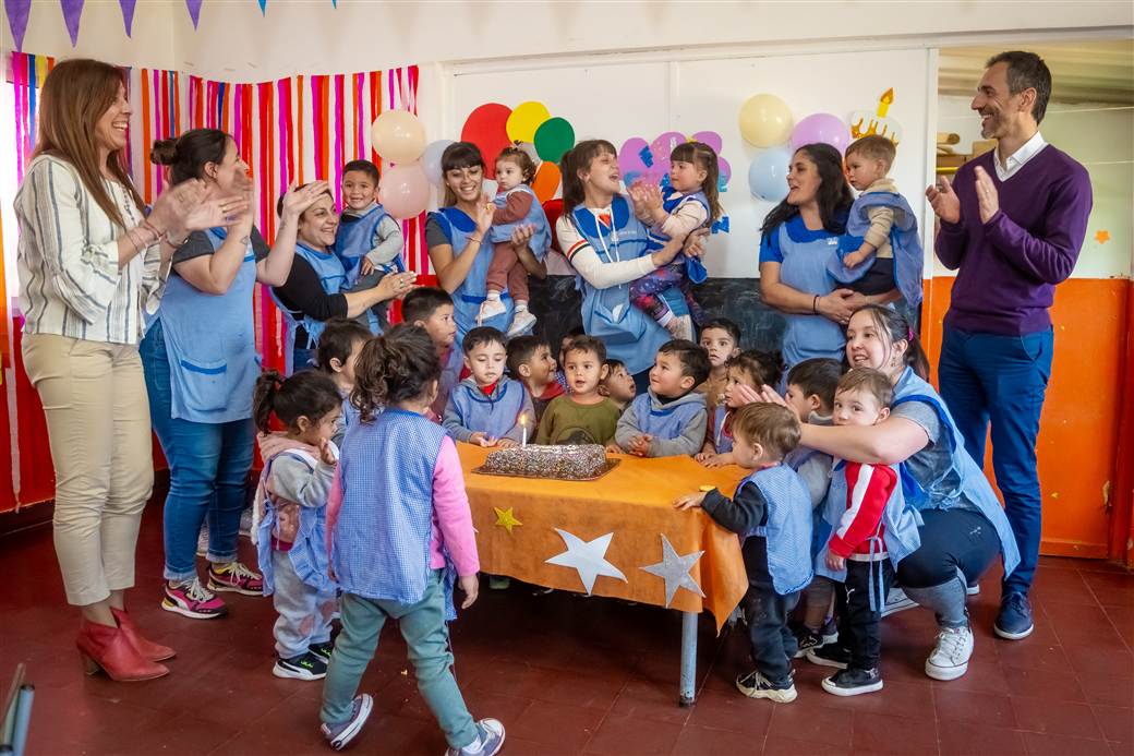 Seguidamente, Marita Calviño, docente a cargo del Jardín Maternal “Globo Rojo”, destacó: “Es muy importante para nosotros que este jardín cumpla un año más de vida, y sobre todo que en los festejos vengan a acompañarnos, tanto funcionarios como nuestro Intendente, eso demuestra cómo ellos se comprometen con las instituciones educativas y con la enseñanza de las primeras infancias, verlos jugar con los niños y con las niñas, pasar un momento agradable, ellos son el pilar fundamental del jardín, hacen que esto funcione y que sigamos cumpliendo año”.