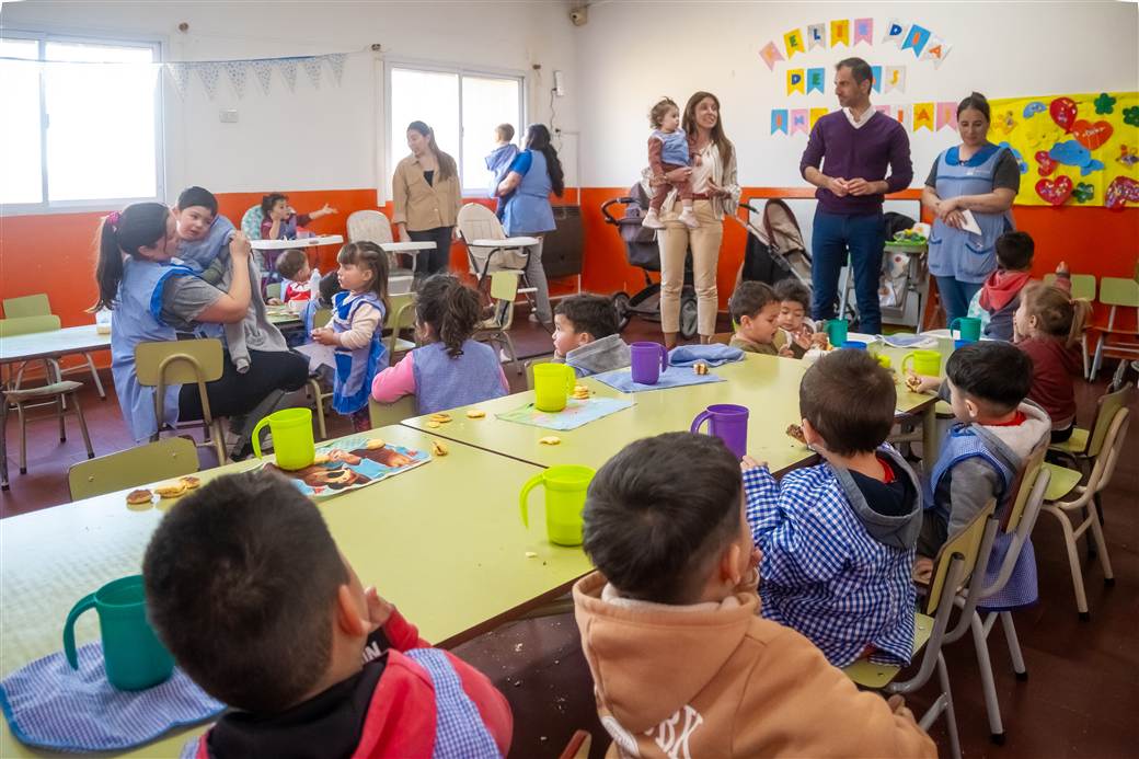 En un nuevo aniversario del Jardín Maternal municipal ubicado en el barrio San Jorge, el intendente Pablo Petrecca junto a la directora de Educación, Verónica Ferrarezi, se hicieron presentes en la institución mencionada y acompañaron a la comunidad educativa en un emotivo festejo donde se reconoció la calidad y el valor educativo del espacio que recibe a diario a más de 70 niños de entre 45 días y dos años de edad.