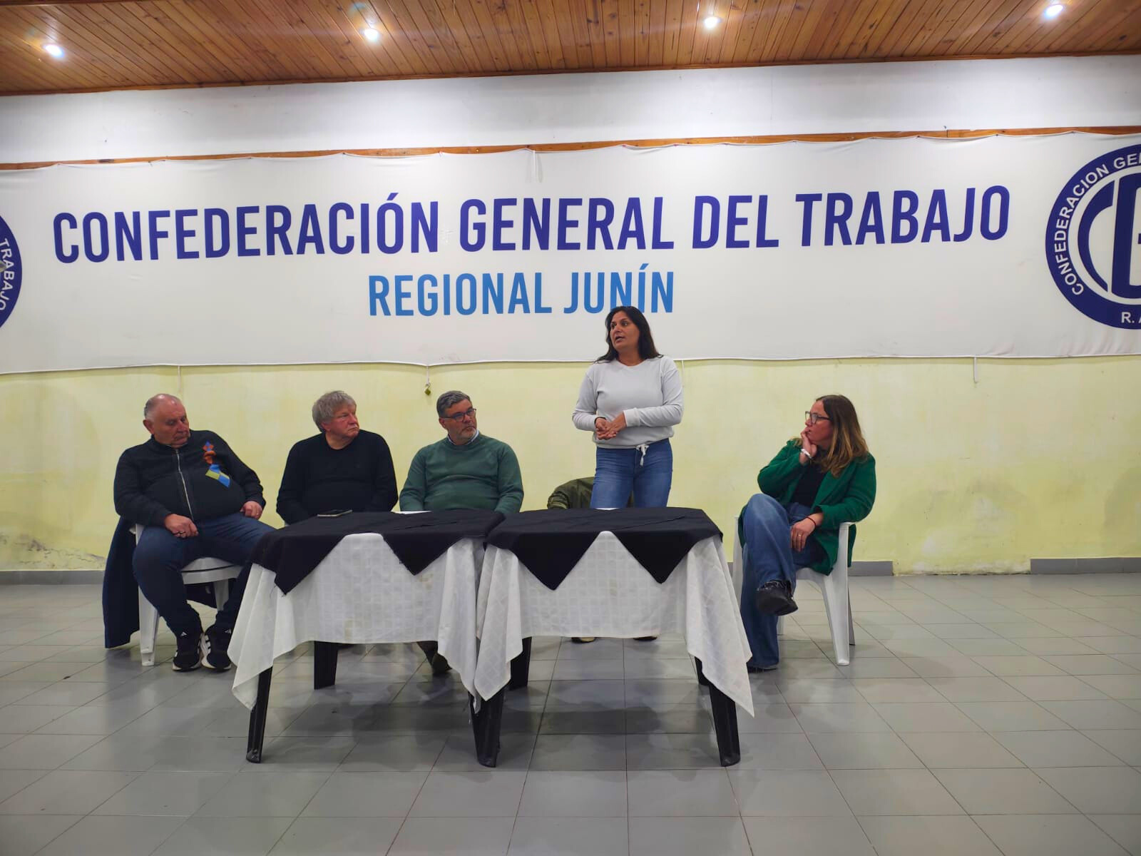 Los candidatos de Fuerza Patria, Valeria Arata, Fernando “Turi” Burgos y Cecilia Paolizzi, recibieron un fuerte respaldo de dirigentes gremiales y trabajadores durante una reunión en la sede la CGT Regional Junín.